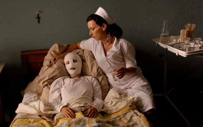 Feeling as though she has no way out Lucille attempts suicide after rifling in her father’s lab. She survives, but is left with hideous burns to her face, which her father chooses to treat at home. He hires a sultry nurse with her own chequered past to look after Lucille.